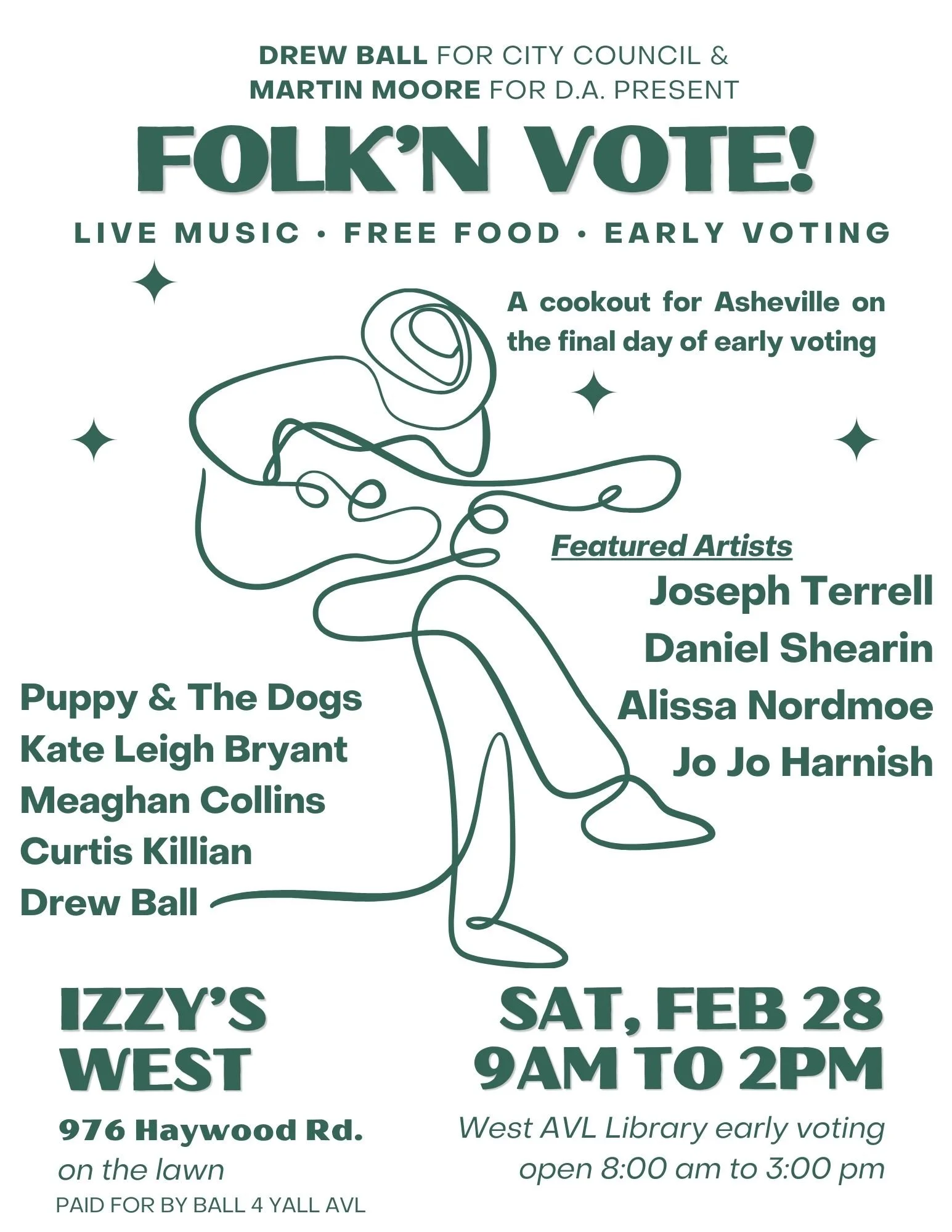 Drew understands the realities facing Asheville because he has lived them. He has worked as a musician and in the service industry here in Asheville, giving him firsthand experience with the challenges facing artists, hospitality workers, and working families. He attended public schools and comes from a family of educators—his mother was a special education teacher, and his sister is the superintendent of one of the largest school districts in Western North Carolina.